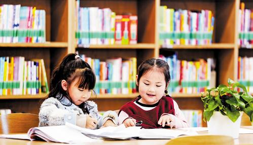 2月28日,小朋友在雄安图书馆内阅读书籍。 本报记者 李东宇摄