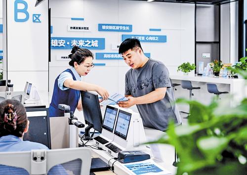 2025年7月8日,雄安政务服务中心工作人员为群众办理业务。 本报记者 李东宇摄