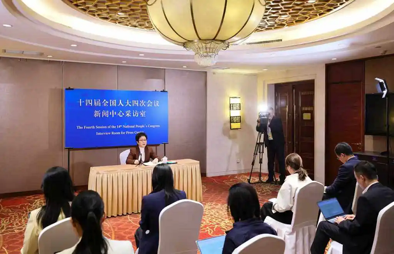 3月8日晚,河北省代表团举行新闻发布会,介绍代表团开展审议审查、提交议案建议有关情况。图为新闻发布会现场。记者 霍艳恩摄