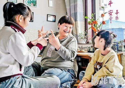 2025年3月2日,阜城县“爱心妈妈”王梦雨与两个“女儿”一起开心游戏。(河北日报资料片)河北日报记者 李东宇摄